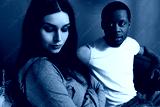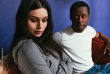 Young interracial couple of white woman and black man has a quarrel, closeup. Girl is offended, not talk, hurt feeling, anger concept.