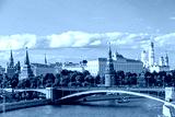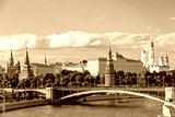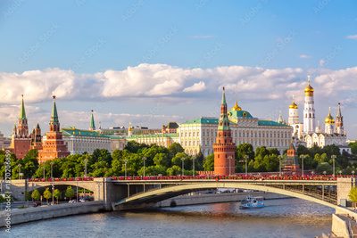 View of Moscow Kremlin, Moscow River and Big Stone bridge during summer sunny day. Landmark in Moscow, Russia