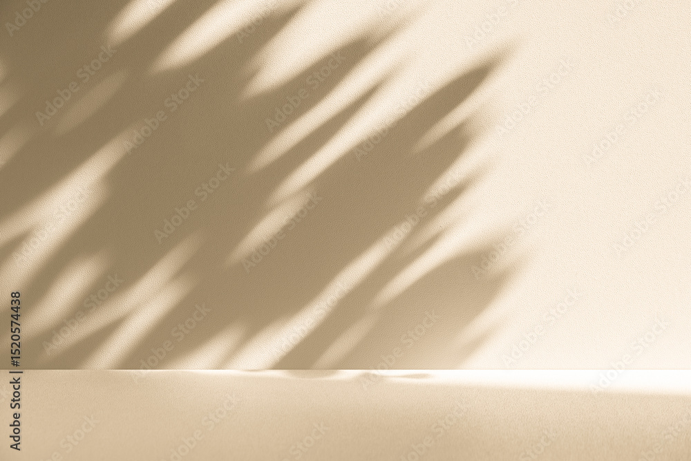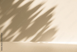 Wall interior background, studio and backdrops show products. with leaf shadow from window color beige and white. background for text insertion and presentation of product