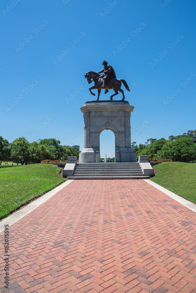 The statue of Sam Houston in Hermann Park, downtown of Houston, Texas, US. He was American politician and soldier, best known for role in bringing Texas into the United States as a constituent state.