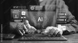 Chat with AI or Artificial Intelligence. Young businessman chatting with a smart AI or artificial intelligence using an artificial intelligence chatbot developed by OpenAI.