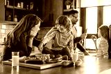 Happy family is cooking together in a bright kitchen, showing joy, teamwork, and love at home