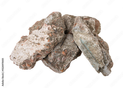 Broken concrete rubble debris isolated on transparent background