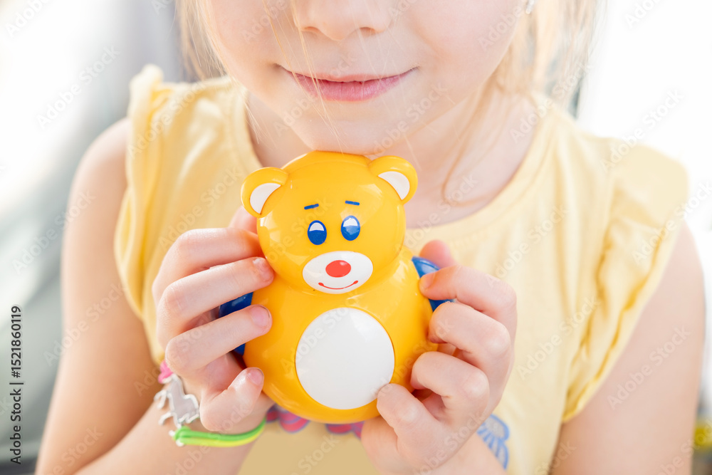 happy sweet girl finds comfort in toy, emphasizing importance emotional support in early years, emotional attachment, childhood psychology