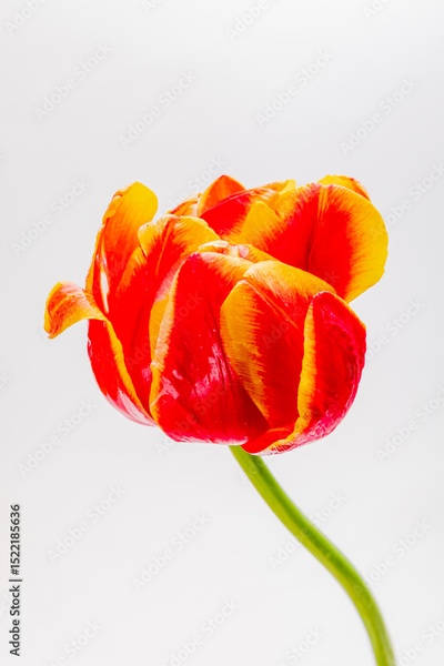 A stunning tulip displays its rich red and yellow petals, symbolizing renewal and beauty of spring