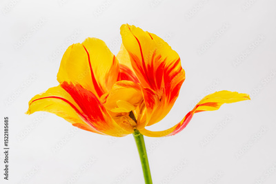 Bright yellow and red tulip petals bloom, embodying spring's fresh colors