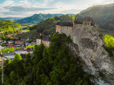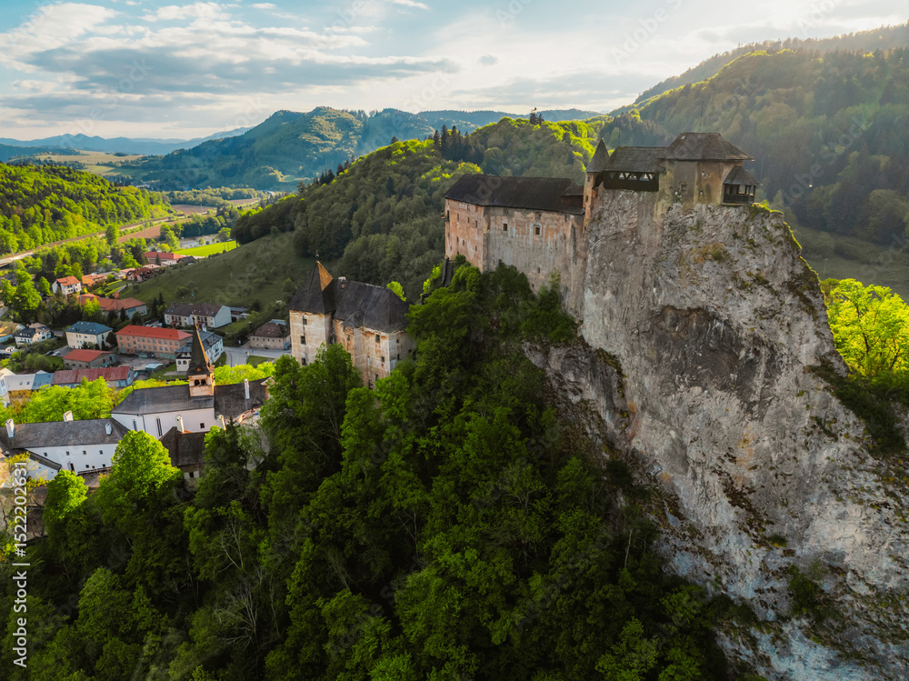 Orava castle or oravsky hrad in Oravsky Podzamok in Slovakia. Medieval castleon high cliff by the Orava river.