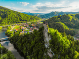 Orava castle or oravsky hrad in Oravsky Podzamok in Slovakia. Medieval castleon high cliff by the Orava river.
