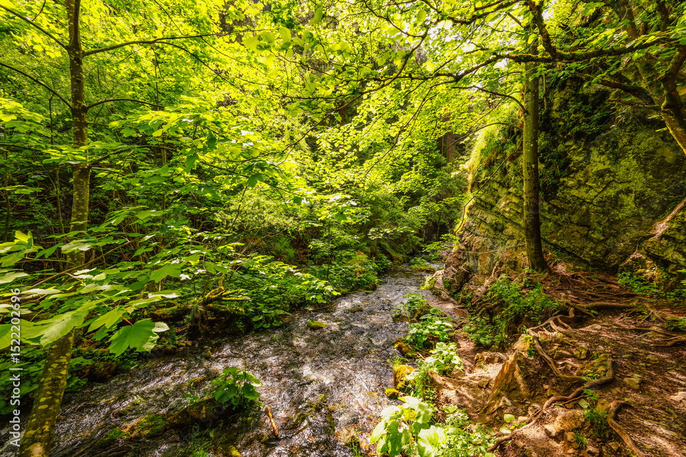 Hiking in Canyon in Prosiecka Valley near Kvacianska valley in Liptov region in northern Slovakia