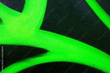 Neon green graffiti spray on black wall. 90s, Y2K vibe, urban street art, fluorescent style. Posters, digital art, urban backgrounds, modern 90s, 2000s, Y2K creative visuals.