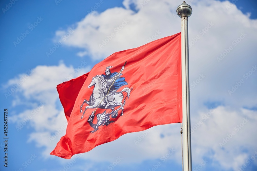 The flag of the city of Moscow is fluttering in the wind