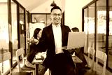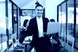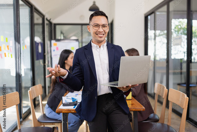 businessman holding laptop standing in the office