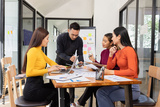 Group of Asian business working analysis project brainstorm in modern office, Asian businesspeople team working together, Business startup and company strategy planning concept.
