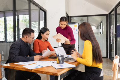 Group of Asian business people working together and presentation a meeting in office,