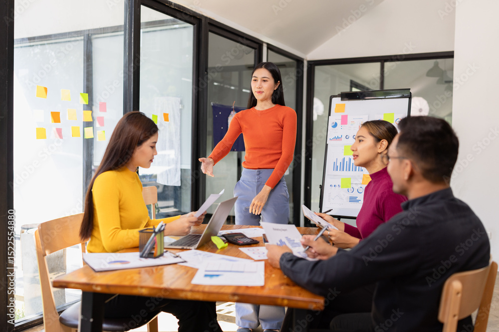 Group of Asian business people working together and presentation a meeting in office,