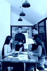 Group of Asian business people working together to presentation with dashboard analysis data management a meeting table in office, Business investment metrics or planning concept.