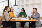 Group of business people working together with dashboard analysis and data management in conference room, Corporate business and dashboard to presentation concept.