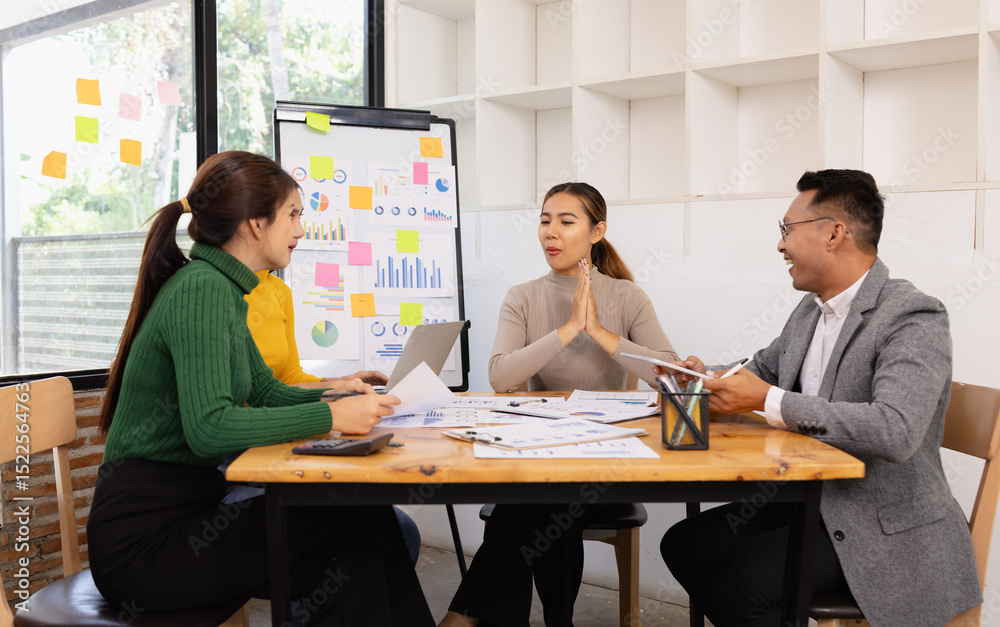 Group of business people working together with dashboard analysis and data management in conference room, Corporate business and dashboard to presentation concept.