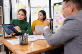 Group of business people working together with dashboard analysis and data management in conference room, Corporate business and dashboard to presentation concept.