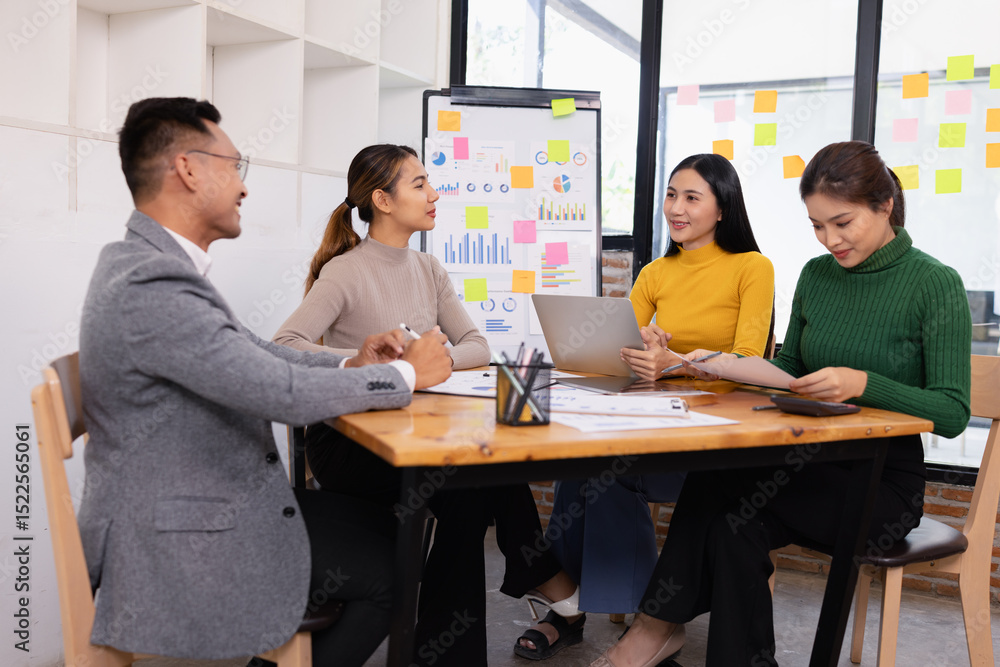 Group of business people working together with dashboard analysis and data management in conference room, Corporate business and dashboard to presentation concept.