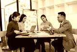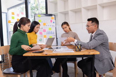 Group of business people working together with dashboard analysis and data management in conference room, Corporate business and dashboard to presentation concept.