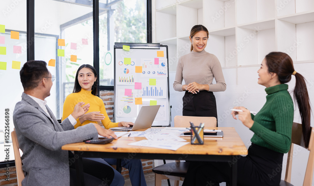 Group of business people working together with dashboard analysis and data management in conference room, Corporate business and dashboard to presentation concept.