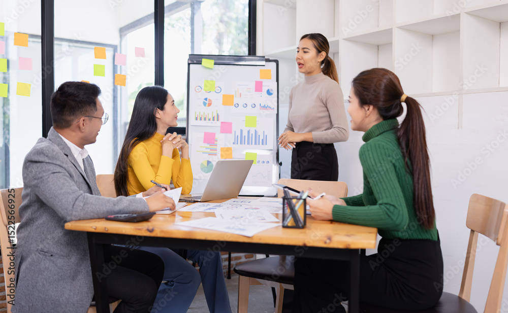 Group of business people working together with dashboard analysis and data management in conference room, Corporate business and dashboard to presentation concept.