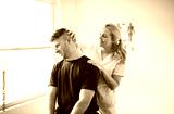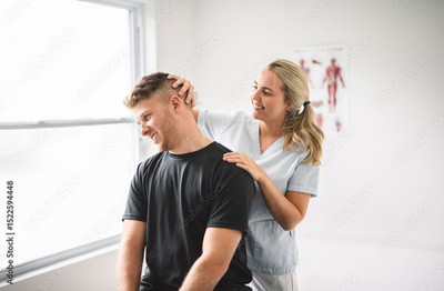 A Modern rehabilitation physiotherapy woman worker with man client leg treatment