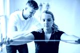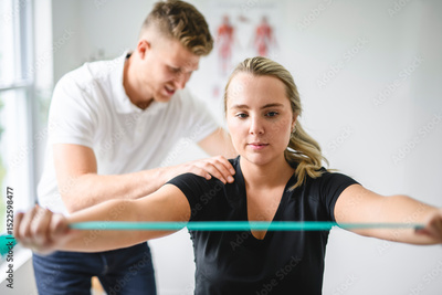 male physio therapist and woman helping patient