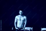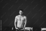 Portrait of young attractive man with muscular strong black beard, piercing sexy look in the studio posing