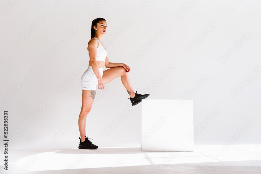 Young female athlete training in a gym using sport equipment