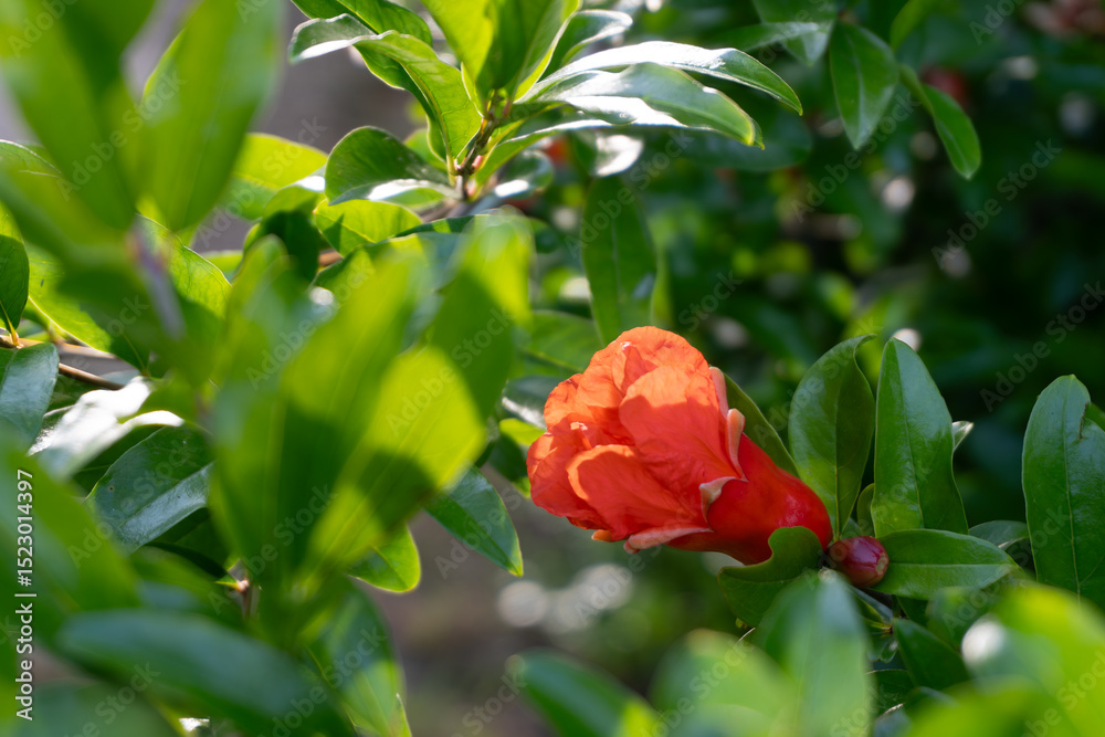 Pomegranate flowers.Fruit trees, red flowering pomegranate tree.