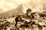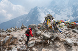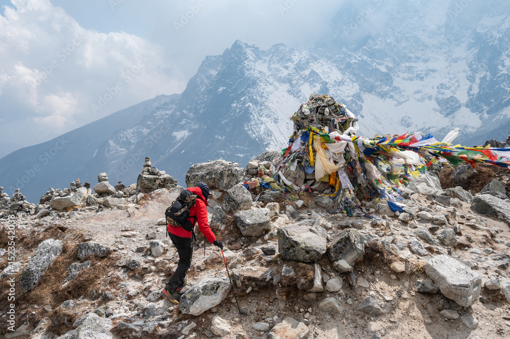 Tourist while climbing to Thukla Pass (4,800 m) a place of reflection and reverence, this high-altitude pass honours the climbers and Sherpas who have lost their lives in the Everest region.