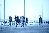 Traditional camel dromedary race of Ash-Shahaniyah in Qatar with robots instead of jockey.