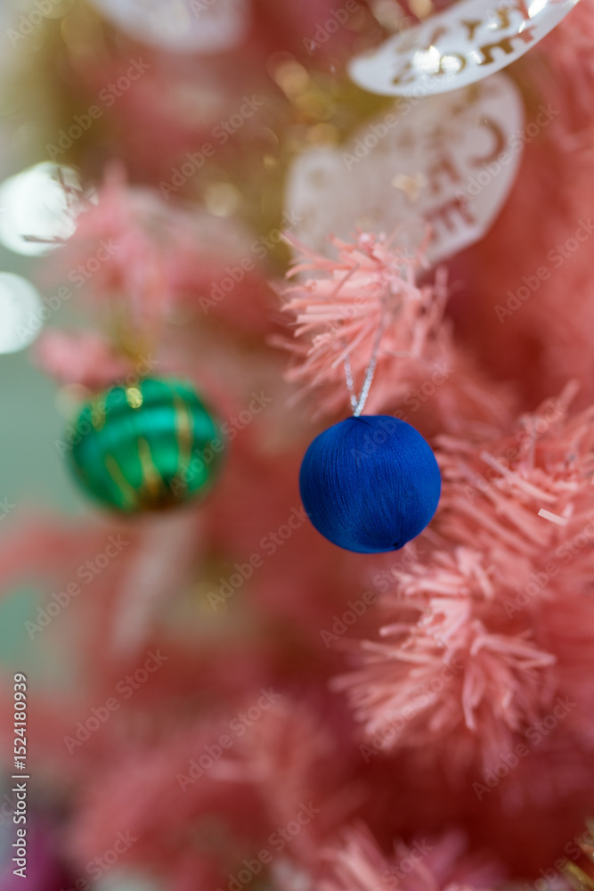 Pink christmas tree with ball. Close up