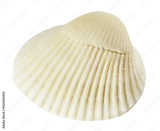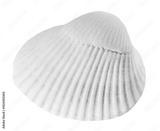 Colorful Seashells falling in the air isolated on white background. Summer time concept.