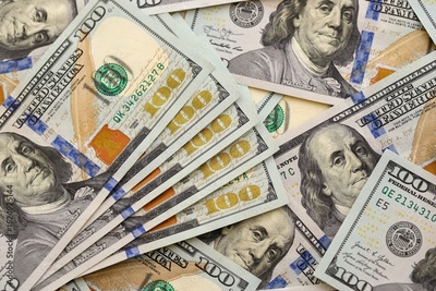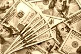 Background with money American hundred dollar bills. 100 dollar bills background close up