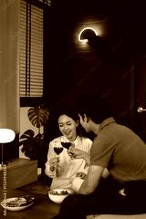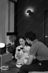 Asian Couple Toasting Wine Glasses at Home Celebration Romance Valentine's Day Dinner Date Anniversary Wine Tasting Party Joyful Togetherness Love
