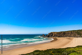Empty Odeceixe beach in Portugal. Beautiful Algarve coastline. View at sandy beach and cliffs