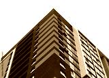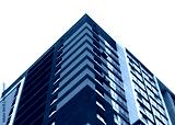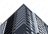Building corner with modern high rise apartment architecture. Tall white residential structure with