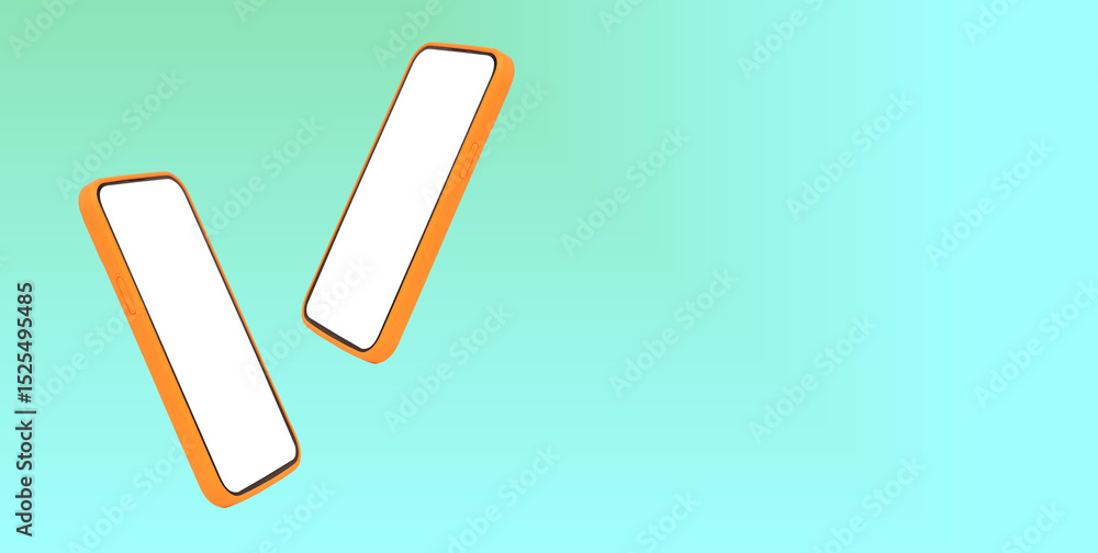 Phone mockup with two floating smartphones in pastel gradient background. Mobile devices in mint,