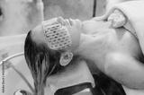 Modern scalp spa treatment in salon for hair therapy, relaxation and scalp care.
