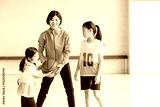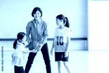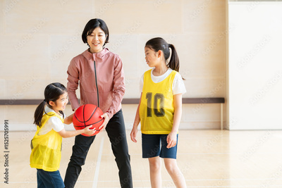 バスケットボールをする子供たちと指導する女性