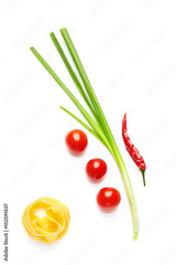 A food and healthy lifestyle concept: Italian herbs and spices. Top view. Isolated on white.