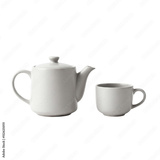White ceramic teapot and cup set