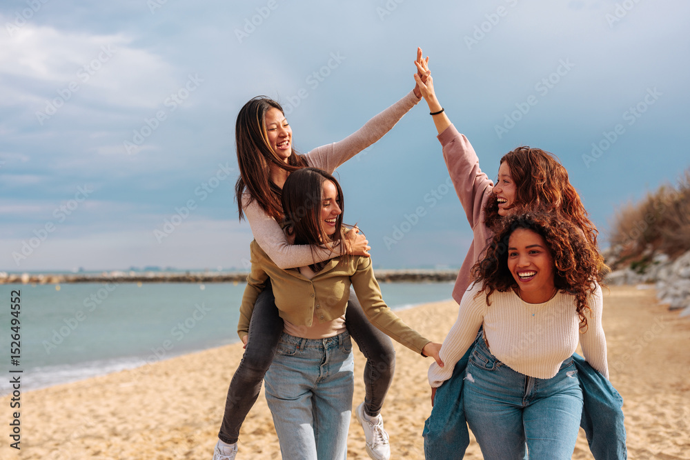 Best friends having time of their life at the beach