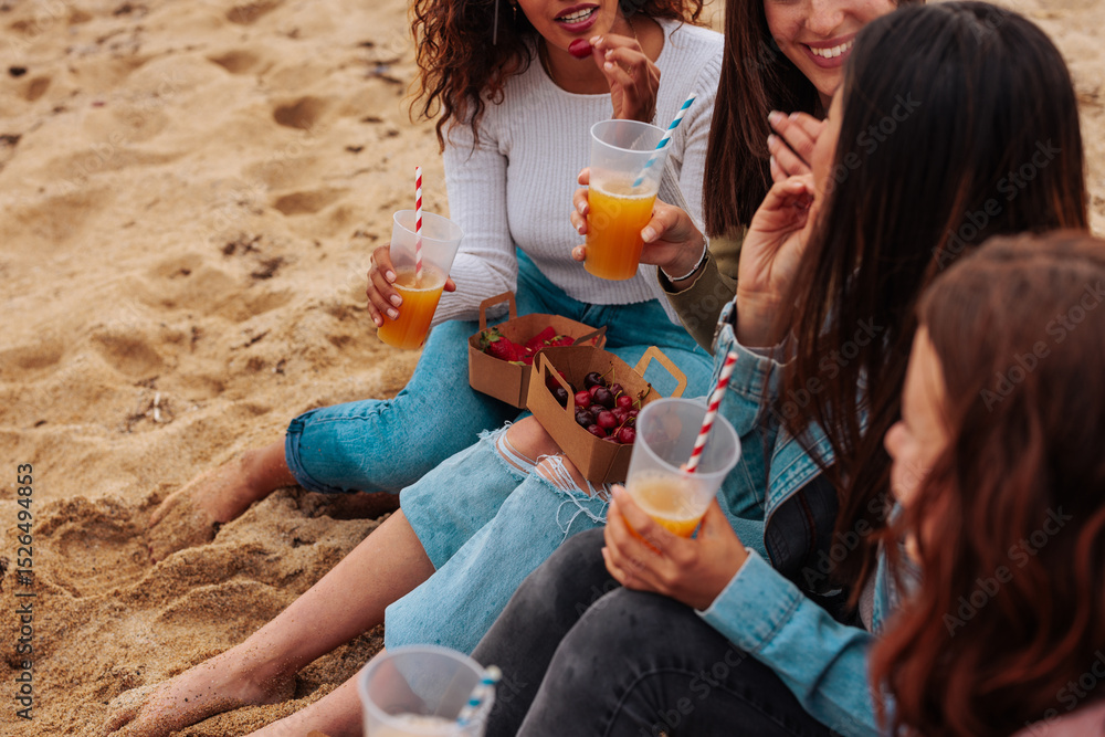 Friends having a picnic by the beach