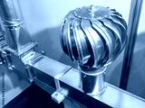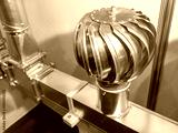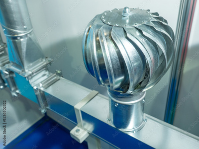 Industrial rotary turbine ventilator mounted on a metal air duct, used for ventilation and air circulation in HVAC systems. – Industrial equipment. Air ventilation.