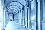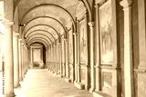 monastery corridors with arches, historic quarters, murals architecture, Roman galleries Baveno, rich Italian heritage, Italy