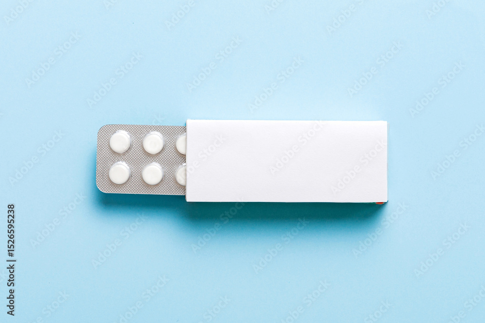 Blank White Product Package Box Mock-up. Open blank medicine drug box with blister top view